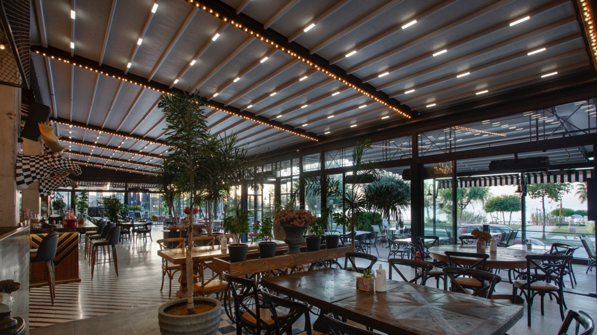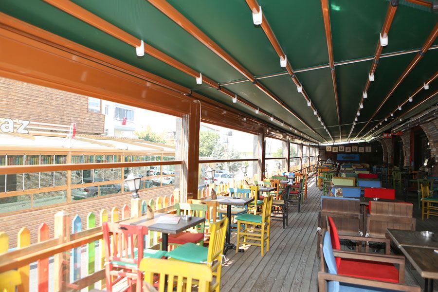 AKOR katlamalı tente sistemi kış bahçesi, oteller, restoranlar, kafeler ve pastanelerde daha geniş bir alanda kullanmak için üretilmiş sistemdir.